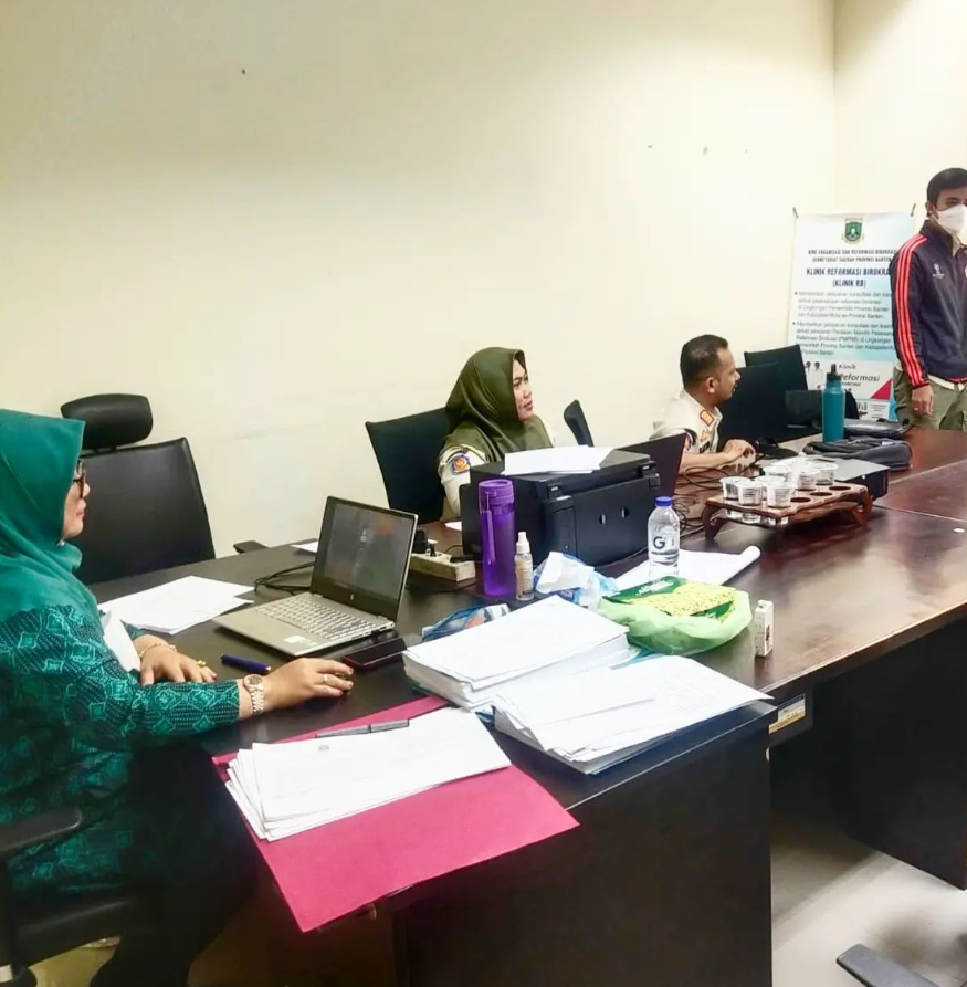 Bertempat di Ruang Rapat Biro Organisasi Setda Provinsi Banten, Tim Penyusun SOP Satpol PP Provinsi Banten didampingi oleh Biro Organisasi melakukan asistensi dan verifikasi rancangan Standar Operasional Prosedur (SOP) Satpol PP Provinsi Banten (07/09/2023). Asistensi memasuki tahap finalisasi disesuaikan dengan struktur organisasi perangkat daerah yang ada saat ini, selanjutnya diajukan ke Biro Hukum Setda Provinsi Banten sebagai Rancangan Peraturan Gubernur.