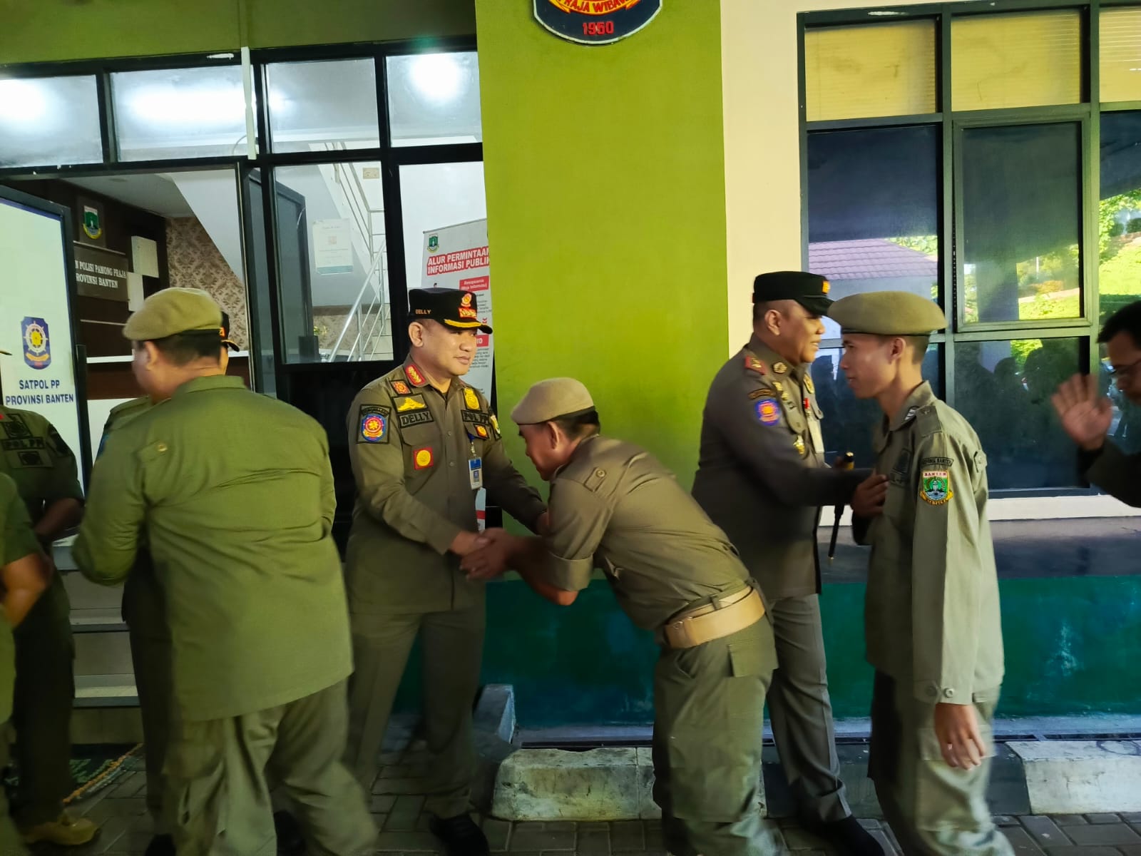 Sumber Gambar :Mengawali awal masuk kerja setelah liburan dan cuti bersama Idul Fitri 1445 H Satuan Polisi Pamong Praja menggelar Halal Bihalal dan ramah tamah, Kepala Satuan Polisi Pamong Praja Provinsi Banten beserta seluruh pegawai Satpol PP Provinsi Banten mengikuti kegiatan serta foto bersama.