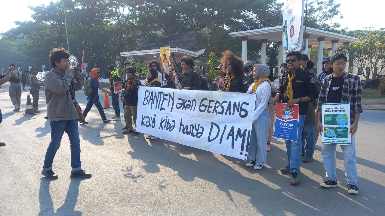 Kasat Pol PP Provinsi Banten, Dr. Agus Supriyadi, S.Sos, M.Si, Ia menyebutkan, aksi penyampaian pendapat ini dilakukan oleh Mahasiswa untuk menyampaikan Orasi tentang Polusi Udara yang berada di Provinsi Banten.
