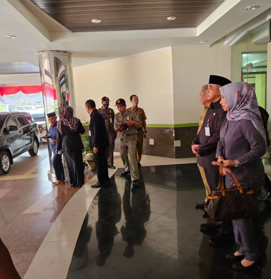 Satuan Polisi Pamong Praja(Satpol PP) Kabupaten Tangerang melaksanakan giat pengamanan Bupati Tangerang pada undangan Rapat Paripurna DPRD yang dilaksanakan di Kantor DPRD Kabupaten Tangerang, Kecamatan Tigaraksa, Senin (28/08/2023). Pelaksanaan pengamanan ini dilakukan sebagai bentuk pengamanan perjalanan/kunjungan dinas kepala daerah dengan tujuan terciptanya keamanan dan kenyamanan khususnya kepada Kepala Daerah. Kepala Satuan Polisi Pamong Praja Kabupaten Tangerang, Agus Suryana mengatakan pelaksanaan ini dilakukan demi memberi kenyamanan dan keamanan Bupati Tangerang atas kegiatan rapat yang dilaksanakan di Kantor Dewan Perwakilan Rakyat (DPRD) Kabupaten Tangerang. "Pengawalan yang dilakukan Satpol PP berada di ring 2 (dua) dan pada ring 1 (satu) dilakukan oleh Protokoler Kepala Daerah (Bupati). Hal tersebut guna memberikan keamanan, kenyamanan, Ketertiban serta kesuksesan atas kegiatan Bupati Tangerang, "katanya. Selain itu Agus Suryana menerangkan, rapat Paripurna ini membahas tentang penyampaian penjelasan Bupati Tangerang atas nota keuangan Raperda perubahan APBD Tahun 2023 dan pengumuman berakhirnya masa jabatan Bupati dan Wakil Bupati Tangerang masa jabatan 2018-2023. "Alhamdulillah proses pelaksanaan rapat Paripurna ini berjalan dengan tertib dan lancar, " ucap Agus Suryana, Kasat Pol PP Kabupaten Tangerang. Sebagai informasi, Satpol PP Kabupaten Tangerang yang bergabung dengan Protokoler Bupati maupun Wakil Bupati Tangerang akan selalu memberikan pengamanan dan kenyamanan pada perjalanan dinas Kepala Daerah Kabupaten Tangerang (Bupati dan Wakil Bupati) di wilayah Kabupaten Tangerang.